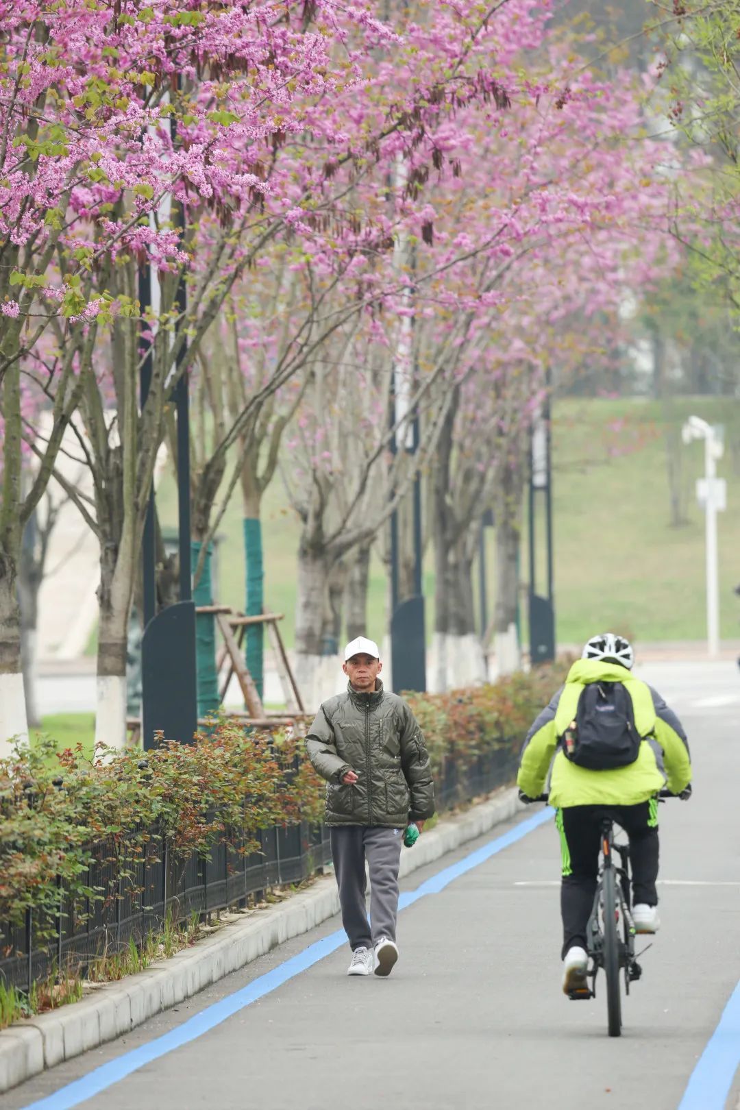 赏花人不急着拍照,只是放慢脚步,沿着花道闲逛。
