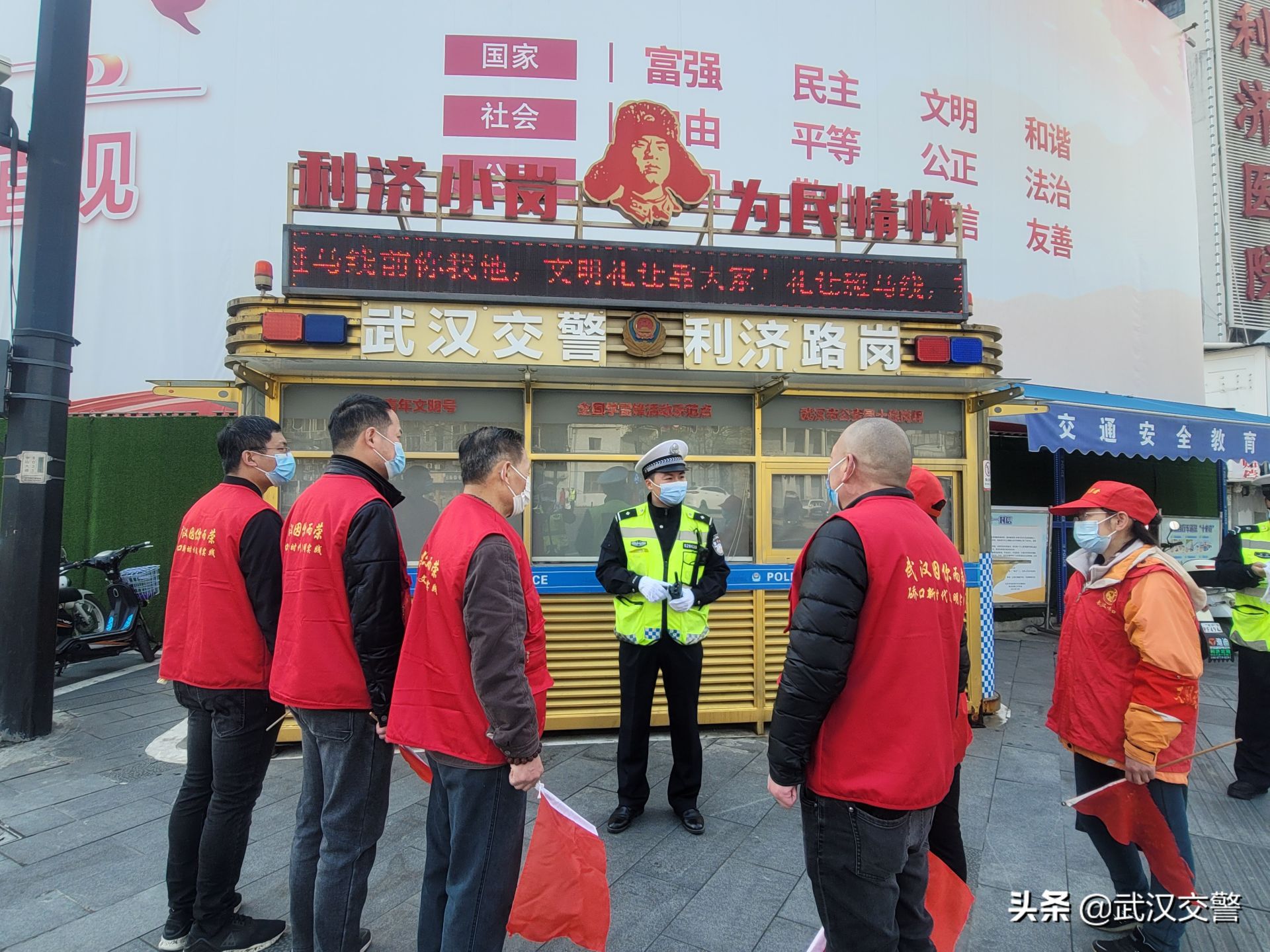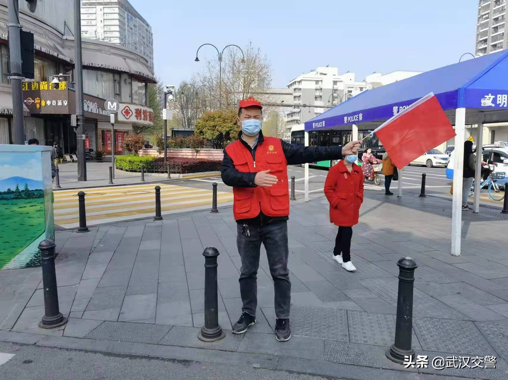 3月28日是个星期一,连续的阴雨天终于结束,天气晴朗。早上7点刚过,利济路口就来了一群“红马甲”,协助维护交通秩序。这个路口一头连着汉正街、一头连着江汉一桥,旁边还有个市第一医院,车流量很大。
