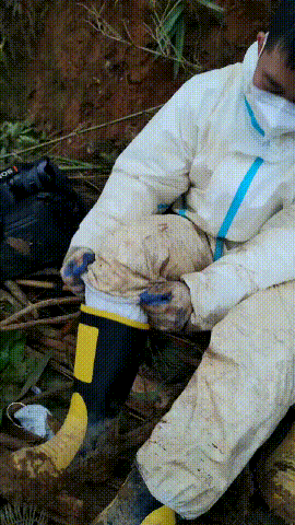 防疫工作不能疏忽,进山前手消毒,戴防护帽,戴口罩,穿防护服,戴手套,戴面罩,套鞋套……包住每一寸裸露的肌肤。防护服中间不能脱,不方便上厕所,队长提前给我们准备了纸尿裤。人生第一次穿上成人纸尿裤,我有点害羞。