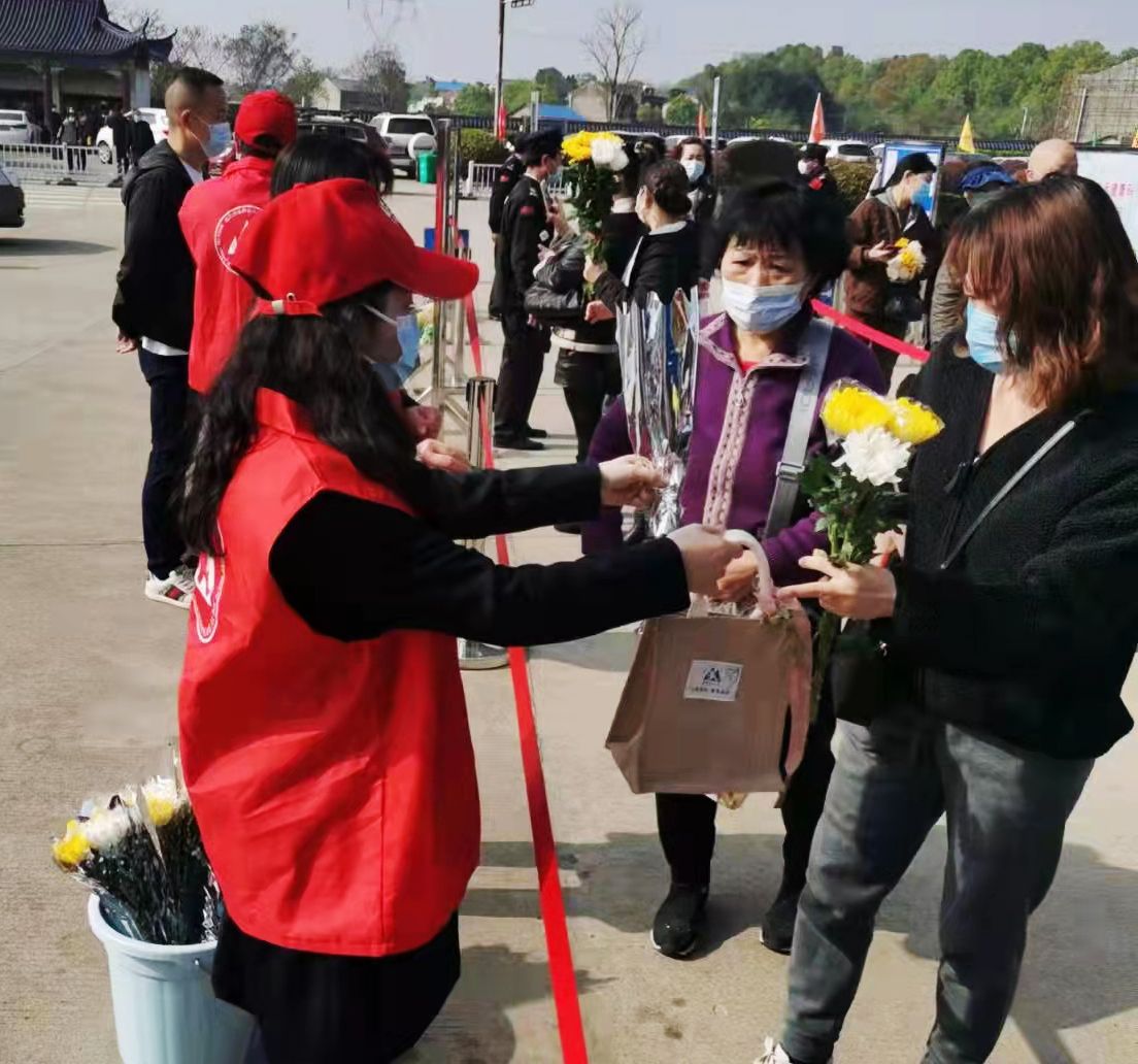 蔡甸区玉笋山陵园管理处副主任王晓霞介绍,为倡导文明祭扫,陵园推出了“纸钱换鲜花、纸钱换福袋”服务,前来祭扫的群众可将携带来的纸钱在园区内服务点免费换成鲜花和福袋。“ 福袋”里有一瓶水、一块抹布、一支马克笔、一个明信片、两个祈福牌、一个丝带,通过写一封家书、献一束花、挂祈福牌、系一个丝带的方式来表达感情,寄托哀思。