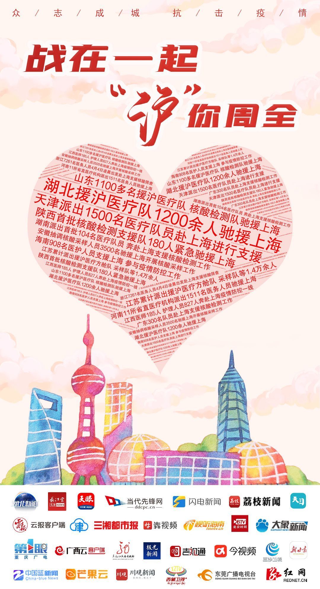 湖北广电融媒体新闻中心联动天眼新闻、闪电新闻、荔枝新闻、三湘都市报、天目新闻、云南日报、津云、今视频、视听海南等全国省市媒体,共同推出创意产品《“沪”你周全,“集结号”已吹响!》,战在一起,“沪”你周全!