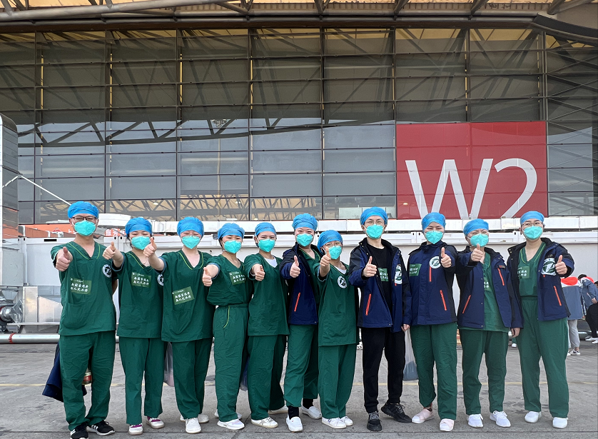此外,医疗队高度重视感染防控工作,每班都安排了7名感控护士,从针对医护人员的规范化培训考核,到流程管理、行为管理,从指导工勤人员穿脱防护服,到清洁消毒和