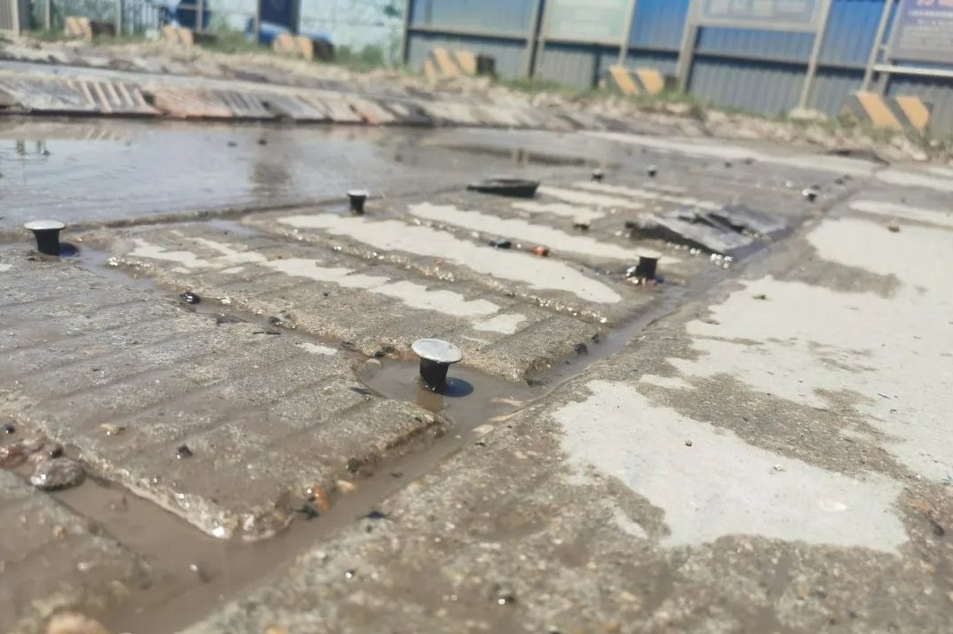 8日11时许,长江日报记者前往现场探访发现,襄河堤上,从汉阳砂石集散中心向东至一处码头,约500米长的一段路上,设置了6处共22条减速带。在一处上堤通道入口处,也设置了3条减速带。其中汉阳砂石集散中心出口左右两侧,各有6条减速带。每条减速带之间距离约半米,不少减速带已破损,固定减速带的钢钉有约2厘米裸露在路面上。