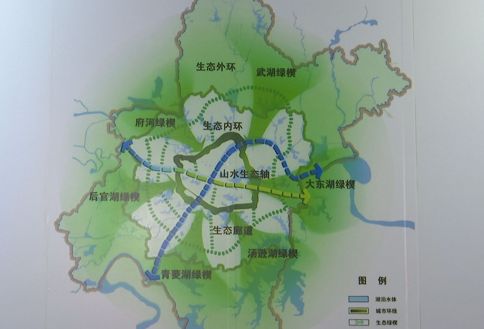 当时总书记特别询问:“武汉靠什么方式实现城市两环隔离?”罗严妤,是当时展览的讲解员,她重点介绍了总览图上以三环线绿化带为起点的六大绿楔,它们像楔子一样,依托武汉的一些自然的水系、山脉这些自然资源,楔入了这个城市的空间当中。
