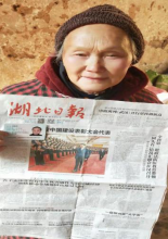 在他的招呼下,我们就在他家的晒场上坐着聊了起来,聊着聊着,不一会儿屋场里几户在家的中老年人都围过来了,使我意想不到的是他们中居然大部分人的皮肤又白又嫩,其中一位名叫吴菊员的86岁的老婆婆(下图)皮肤格外好,我在牵着老婆婆的手坐下时,发现她脸上都没有多少褶纹;还有一位82岁的老伯伯,同样也是精神抖擞,容光焕发,皮肤是白里透红。