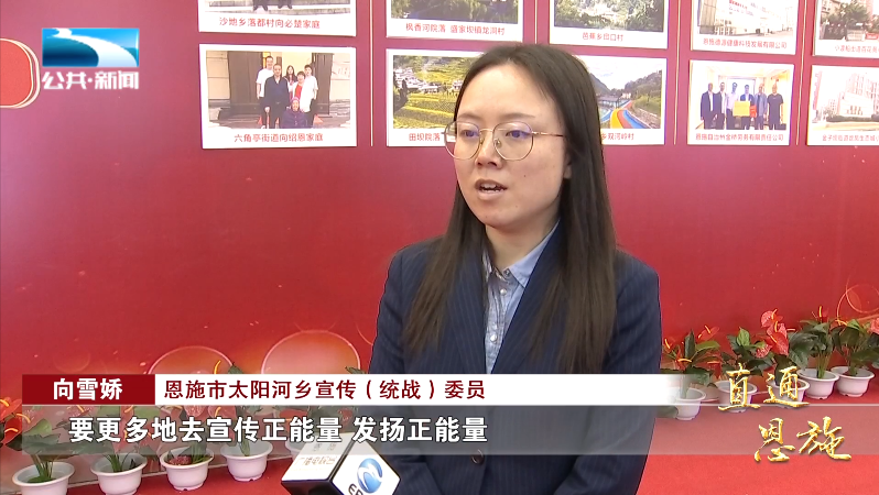 恩施市太阳河乡宣传(统战)委员 向雪娇:“作为基层干部,要更多地去宣传正能量、发扬正能量,引领社会更多的人向榜样学习,引导乡风更加文明。”