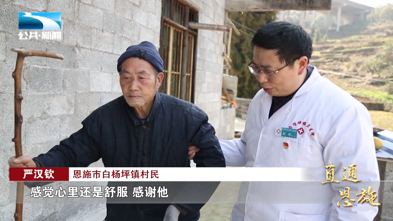 恩施市白杨坪镇村民 严汉钦:“能够有人帮着治疗,能够说出你的病情,心里还是舒服,感谢他。”