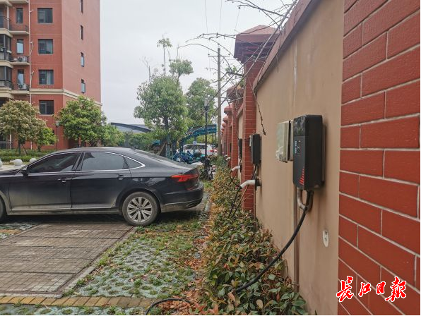 招商公园1872璟园小区内,居民拉线安装的充电桩。长江日报记者孙笑天 摄