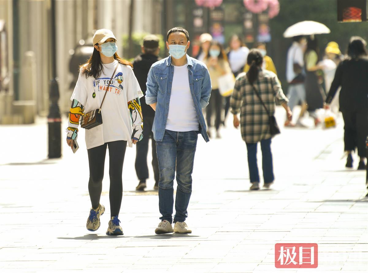 冷空气撤场后,武汉气温涨势迅猛,连跳20℃和30℃这两个档位:今天(18日)就已升至22℃,午后街头有市民穿短袖,本周末将升至30℃+。