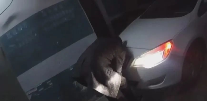 近日,贵阳市公安交通管理局南明区分局七中队中队长陈飞飞巡逻至延安南路V区7栋路段清理违停车辆。下午6点左右,突然一辆白色轿车停在了距离他30米的位置,只见驾驶员蹲在车头一顿操作,民警立即上前查看。而就在这时,驾驶员慌忙跳上车准备驶入停车场。