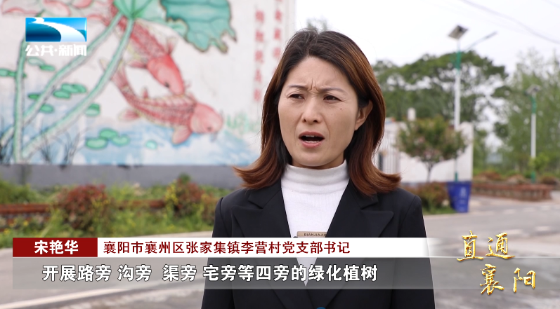 襄阳市襄州区张家集镇李营村党支部书记 宋艳华:“开展路旁、沟旁、渠旁、宅旁等四旁的绿化植树,新建的公共绿地有两个,(总面积)200平方米,种植的有各种树木,有冬青树、红叶石楠、桃树、梨树、柳树等 ,绿化面积达到95%以上。”