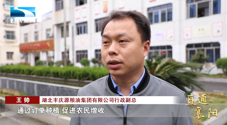 湖北丰庆源粮油集团有限公司行政副总 王帅:“通过订单种植,促进农民增收,每亩地可以增收近50元,年带动的农户促农增收可以达到近一千万元。”