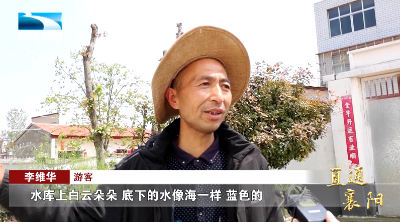 游客 李维华:“水库上白云朵朵,底下的水像海一样,蓝色的,顶呱呱的,不错,到这里感觉到回归大自然的感觉。”