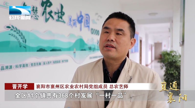 襄阳市襄州区农业农村局党组成员、总农艺师 晋开学:“全区11个镇共368个村发展‘一村一品’,结合全市乡村发展十大主导产业,每个村都确定了1个,最多不超过2个的主导产业,形成了‘一村一品’的发展格局。”