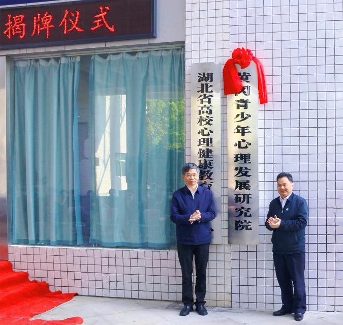 陈向军与何兰田共同为黄冈青少年心理发展研究院揭牌。