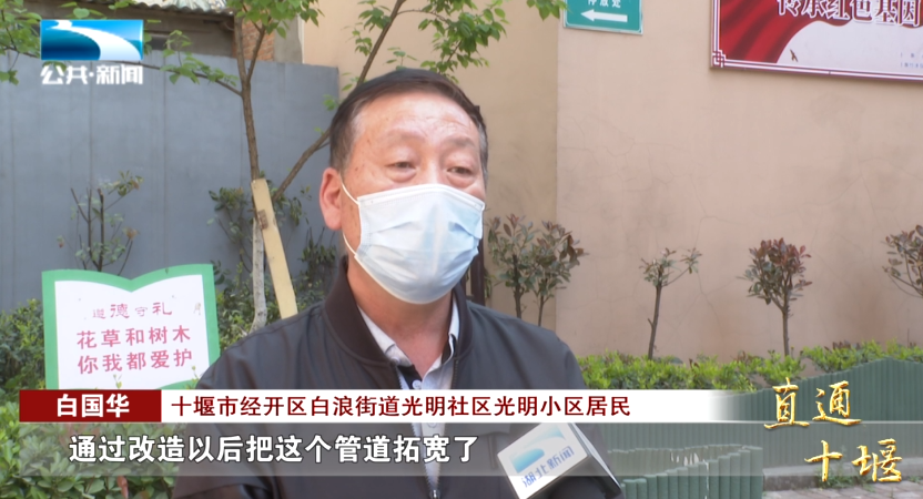 十堰市经开区白浪街道光明社区光明小区居民 白国华:“以前我们最头疼的问题就是化粪池,臭气熏天,居民对这非常不满意,通过改造以后把这个管道拓宽了,一点异味都没有。”