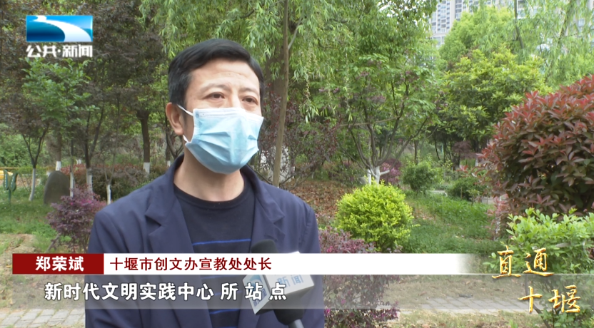 十堰市创文办宣教处处长 郑荣斌:“如今,在十堰,新时代文明实践中心、所、站、点,已经形成了完备的服务网络,把文明实践真正送到百姓身边,做到了在为民、惠民、助民中传播新思想,弘扬新风尚,凝聚群众、引导群众,以文化人、成风化俗。”