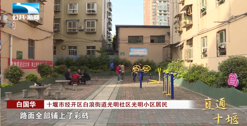 十堰市经开区白浪街道光明社区光明小区居民 白国华:“你看我们现在环境相当的好,房子也给改造了,路面全部铺上了彩砖,变化是相当大的。”