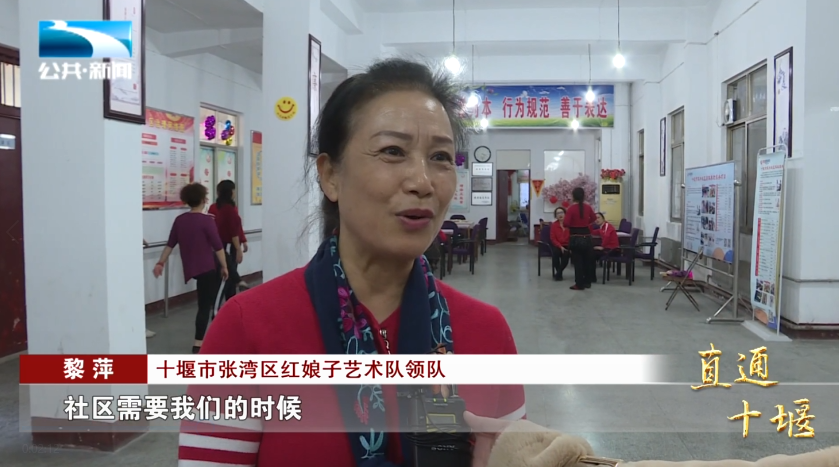 十堰市张湾区红娘子艺术队领队 黎萍:“我们来活动,健健身,大家开心在一起,社区需要我们的时候,我们可以把这些节目都带出去。”