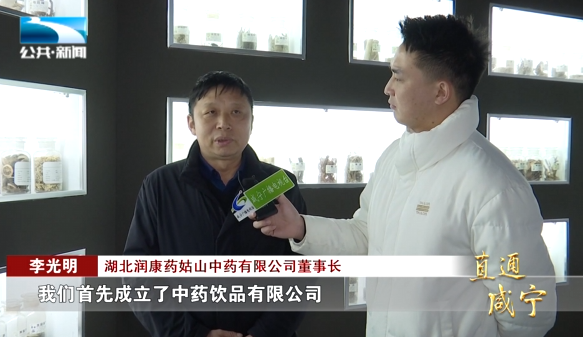 湖北润康药姑山中药有限公司董事长 李光明:“回乡创业之后,我们首先成立了中药饮品有限公司。前年疫情期间我们紧急出资1000多万元,建立医疗科技生产口罩。2020年4月份我们取得医疗生产许可证,十月份取得中药饮品生产许可证,整个都在有条不紊的进行。”