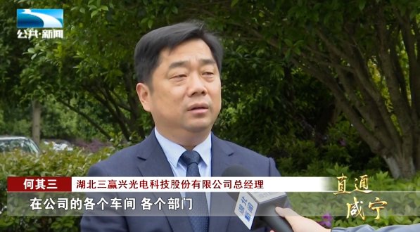 湖北三赢兴光电科技股份有限公司总经理 何其三:“在公司的各个车间、各个部门都有党员带头,成立先锋示范岗。我们要坚持‘严、细、深、实、快’的五字方针,坚决杜绝‘浮、推、绕、拖、假’的五种行为,每个部门都有或多或少的问题进行了查摆。”