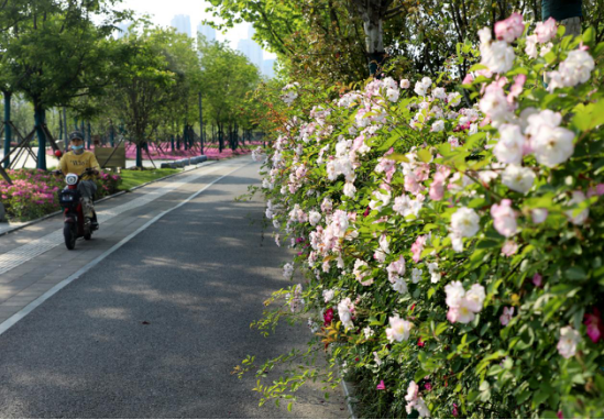 进入4月中旬,武汉市洪山区各干道、公园、广场、河畔的月季已热烈绽放、芬芳登场,百花争奇斗艳,把江城装扮得格外美丽。