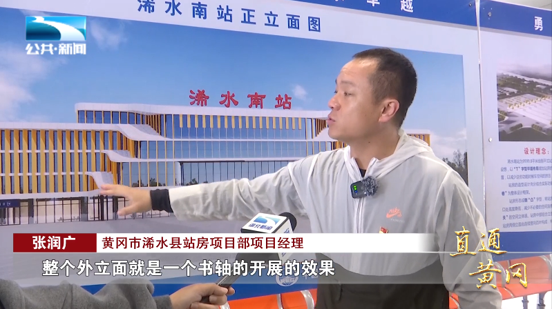 黄冈市浠水县站房项目部项目经理 张润广:“我们浠水作为一个记者之乡,通过一个大的书轴卷展开,整个外立面就是一个书轴的开展的效果,再一个内部特色。因为我们浠水特色是巴河的九孔藕,所以在我们站房包括一些柱头、卫生间,包括我们的VIP候车室都有所体现。”