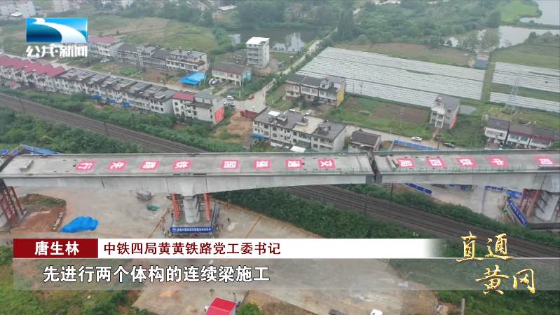 中铁四局黄黄铁路党工委书记 唐生林:“先进行两个体构的连续梁施工,施工完之后,然后对它进行转体。单个体构的重量就达到了12000吨,在保证了它的安全的形势下,被它顺利转体,完成了整个黄黄铁路的一个贯通。”