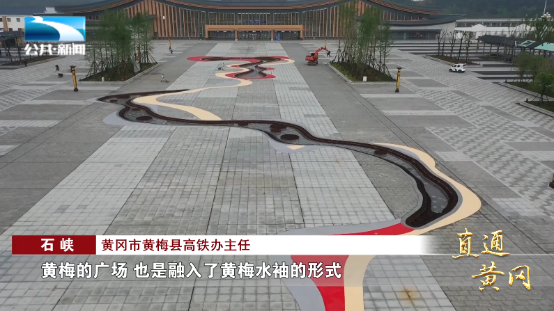 黄冈市黄梅县高铁办主任 石峡:“外形它是融入了水袖的形式。黄梅东站里面顶棚上融入了黄梅十景的挑花元素。黄梅的广场,也是融入了黄梅水袖的形式。”