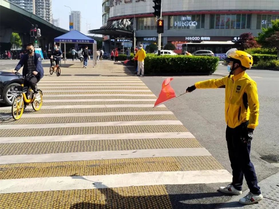 上午9点,在珞喻路街道口路口,12名美团外卖小哥“变身