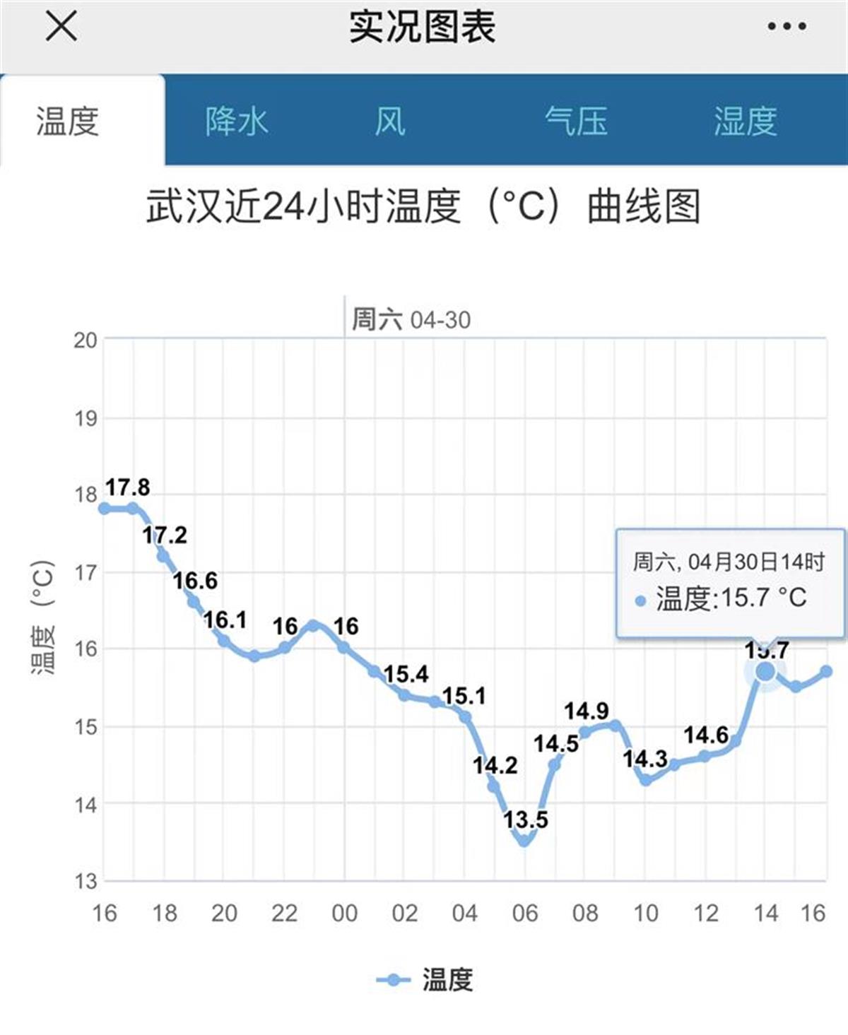 明天就是五一了,新月份新气象,阳光上线啦。气象部门预计,武汉5月1日-4日多云或多云到晴天,高温分别为:22℃、26℃、27℃和28℃,低温分别为:13℃、12℃、14℃和15℃。