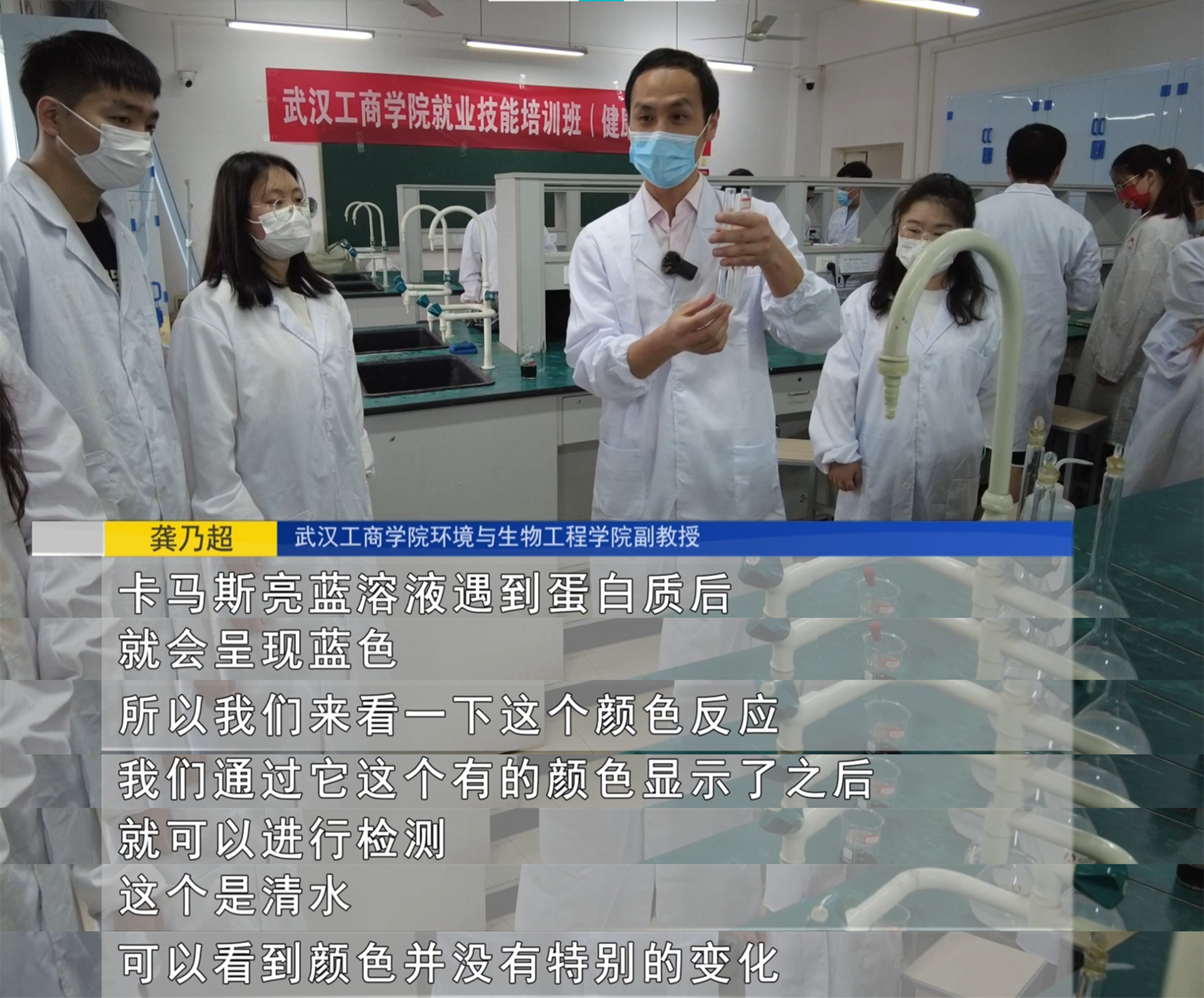 健康管理师是近年来的新兴职业,在健康管理师职业技能培训的实操课上,指导老师正在指导学员如何测定食品中蛋白质的含量。