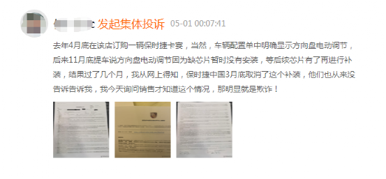 据了解,此事起源于多位车主控诉自己订购的保时捷遭到官方无故减配。