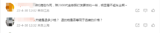 这让不少车主十分恼火。且有车主爆料,在与4S店内人员确认后,补偿的2300元代金券使用范围仅为售后。该车主表示,首先恢复电动方向盘的配置需要3万元左右,其次2300元代金券仅能用于售后维修保养等消费抵扣。“这是打发乞丐的方案吧,还'亲善',恶心谁呢?”