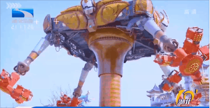 记者张雪晶:“乘坐在中世纪科幻风格的‘达芬奇飞翔’过山车上,以100km/h的速度,从55米的高空俯冲直下,急速飞驰在变化莫测的飞行轨道上,感受风驰电擎、自由飞翔的畅快。这就是国内最长的科幻风格宽翼过山车。”