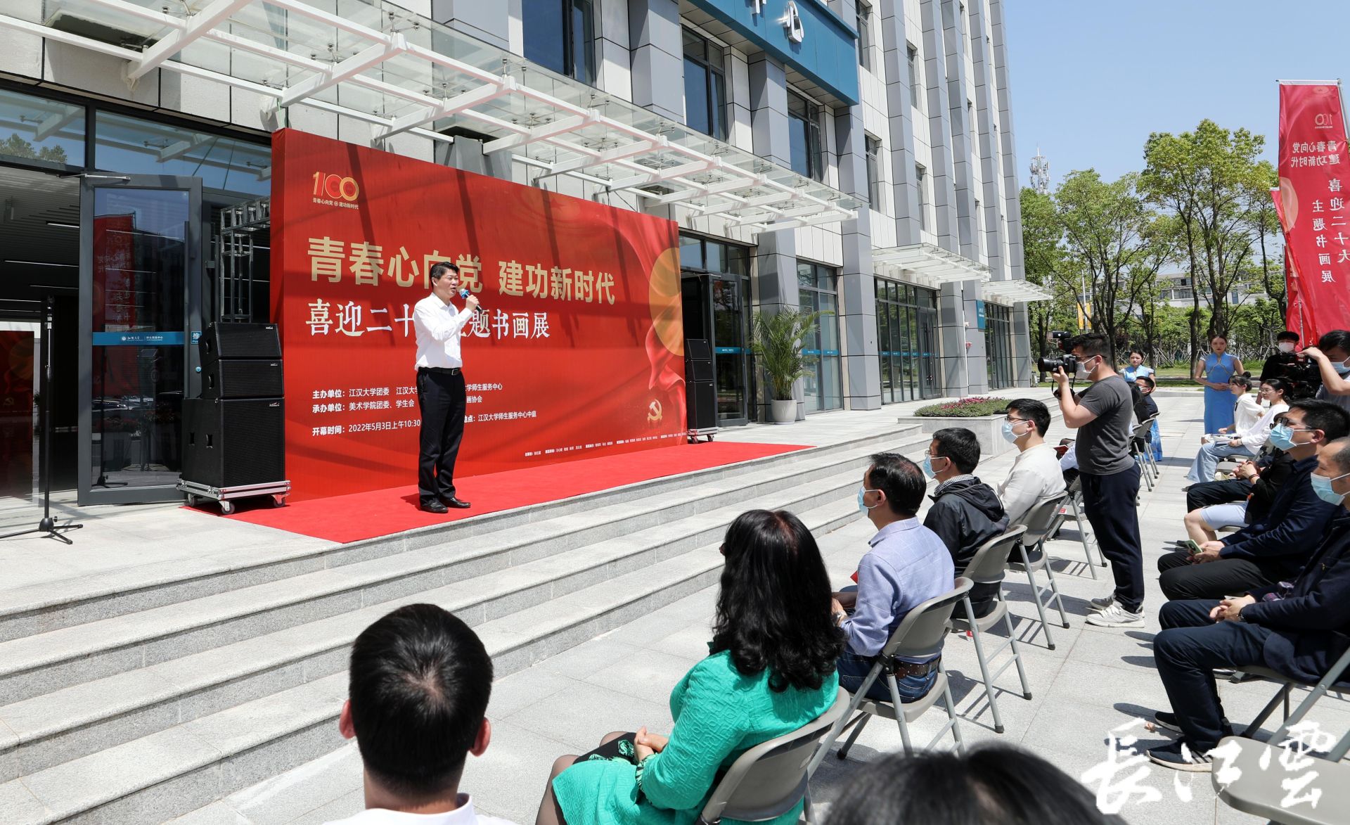 青春心向党,建功新时代。5月3日上午,“逐青春心向党 建功新时代”主题书画展在学校师生服务中心大厅开幕。开幕式上,江汉大学副校长张红星与出席画展开幕式的共青团武汉市委学校部部长王博高兴地说道:“我这个老‘青年’今天也来凑凑热闹,过过青年节。”