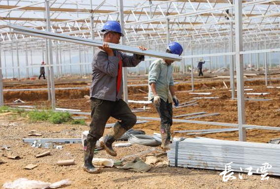 春光烂漫五月天,最是出游好时光。大多数人在享受着假期的惬意,可有许许多多的劳动者坚守在自己的岗位上。5月3日,阳新县黄颡口镇军山村忠和农业科技示范园内,30多位农民工干得热火朝天,为确保一期4个智能温室大棚在6月中旬可以投产,是抢抓工期,从早忙到晚。