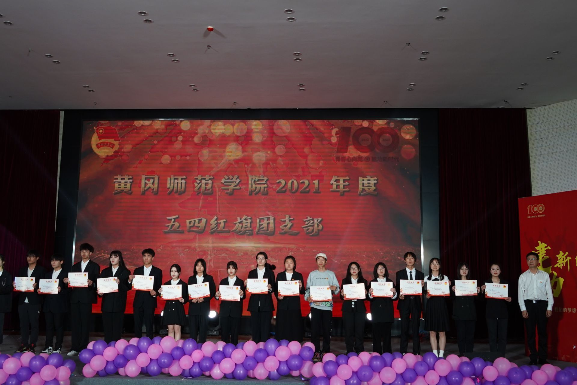 在共青团成立一百周年之际,作为新时代青年,一定要牢记总书记的寄语:“争做堪当民族复兴重任的时代新人,在实现中华民族伟大复兴的时代洪流中踔厉奋发、勇毅前进”。作为黄师学子,我们要在党委的坚强领导下,聚焦“申硕”目标,围绕学校“1234510”整体布局, 为全面建成“全省一流、全国知名”高水平师范大学奉献青春力量,以优异成绩迎接党的二十大和学校第三次党代会胜利召开。