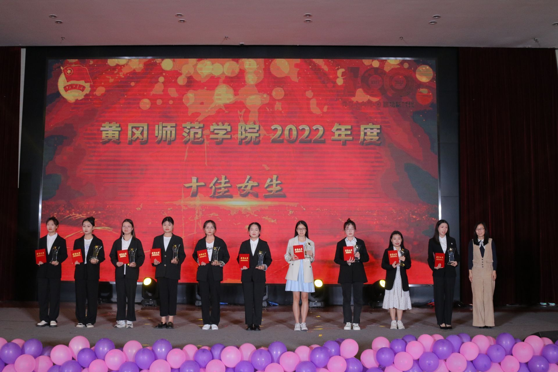 颁奖环节,与会领导分别为“十佳女生”、“优秀女生”、“2021年度优秀共青团员和优秀共青团干部”、“百佳团支书”、“2021年度共青团先进工作者”、“2021年度五四红旗团支部”、“2021年度五四红旗团委”等先进个人和集体颁奖。