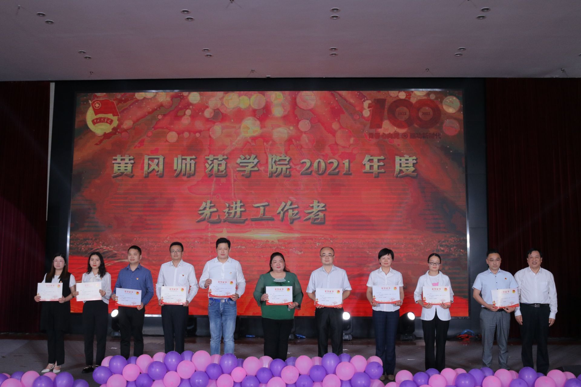 5月4日晚上,黄冈师范学院“喜迎二十大,永远跟党走,奋进新征程”五四晚会在南区厚德楼学术交流中心举行。黄冈师范学院党委书记、校长陈向军,党委副书记陈朝阳,党委副书记王基家,党委常委、副校长宋文生,党委常委、副校长夏庆利,党委常委、纪委书记胡娟出席大会并为受表彰的个人和集体颁奖。