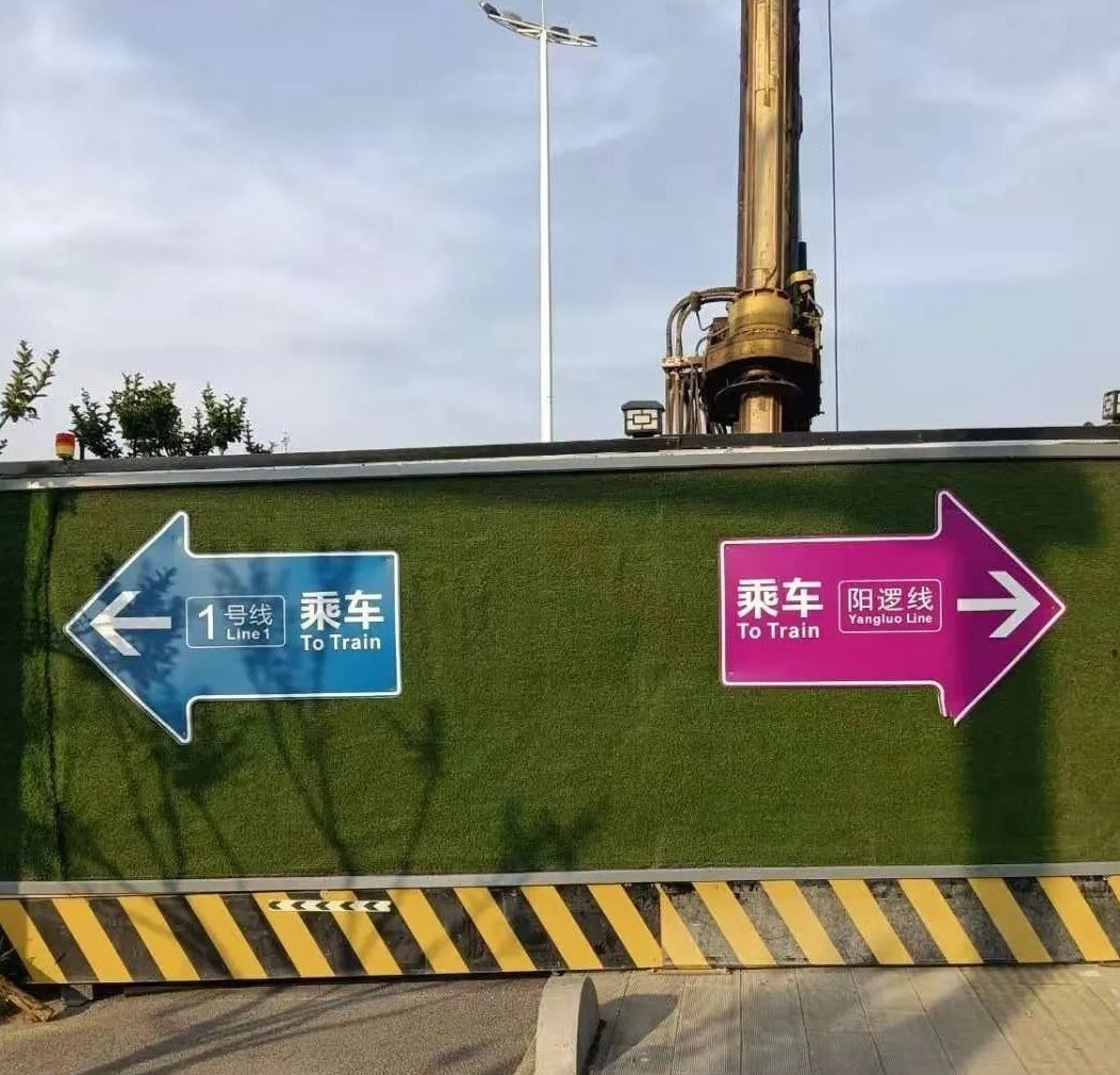 据了解,地铁21号线新荣客运站与轻轨1号线新荣站直线距离只有200多米,但目前不能在站内实行换乘。记者在21号线新荣客运站B出入口看到,出入口施工围挡上张贴了醒目的指示标识,指引换乘乘客绕行解放大道前往轻轨1号线新荣站。