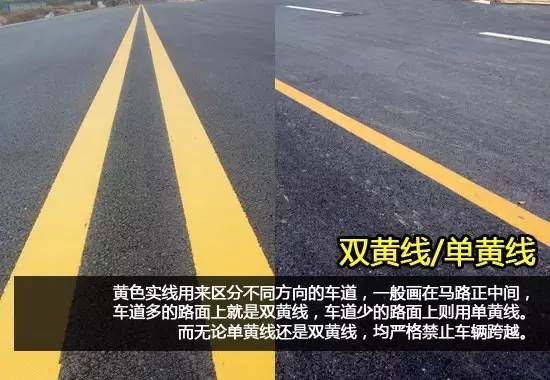 黄色实线用来区分不同方向的车道,车道多的路面上就是双黄线,车道少的路面上则用单黄线。