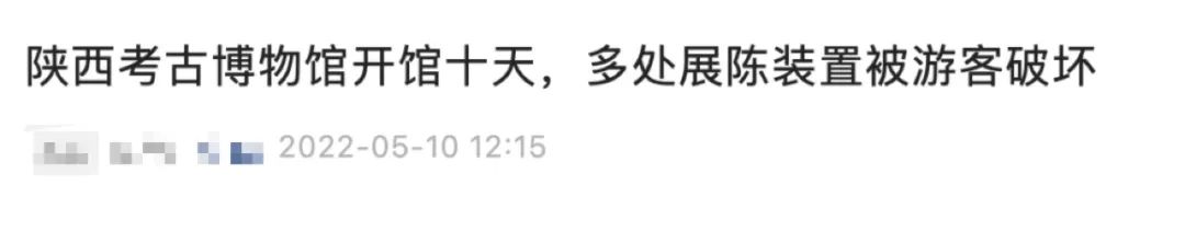 近日,有网友发文称,开馆仅10多天的陕西考古博物馆中,有多处展陈装置被游客破坏。