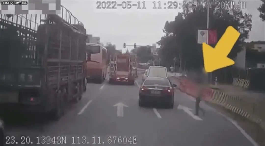 5月11日,广州一名女子从路边径直走到路中间,随后钻进一辆正在等红灯的货车底部,随后遭碾压。这惊险一幕被其他车辆的行车记录仪拍下。