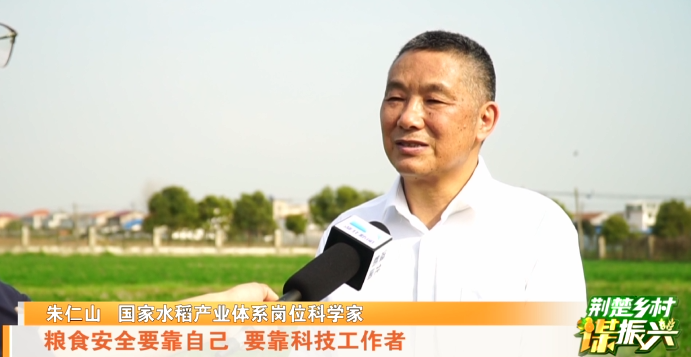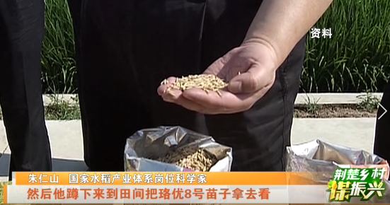 国家水稻产业体系岗位科学家 朱仁山:“那个时候是温度非常高,太阳非常大,晒得皮肤上都很痛,天气40度高温,习近平总书记没有戴帽子,没戴草帽。当时就看了我们珞优8号的种子,还有大米,他说米很漂亮,种子很纯净,然后他蹲下来到田间把珞优8号苗子拿去看,他说长得很壮实,在田埂上面作出重要指示,粮食安全要靠自己。”