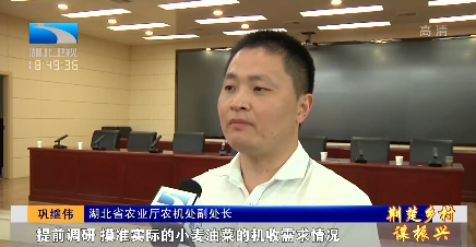 湖北省农业厅农机处副处长巩继伟:“挖掘自身潜力,依托农机专业合作社、农机大户,提前调研,摸准实际的小麦油菜的机收需求情况,以新型农机经营主体为重点,开展本区域内的作业服务。同时,利用外力提供气象服务,还有供需指导服务。”