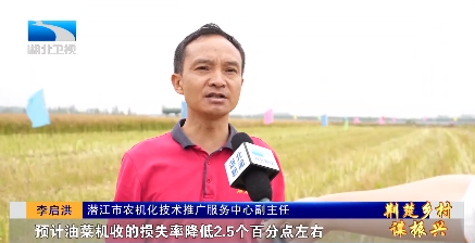 潜江市农机化技术推广服务中心副主任李启洪:“今年我们通过一系列举措,预计油菜机收的损失率降低2.5个百分点左右,小麦降低2个百分点左右。”