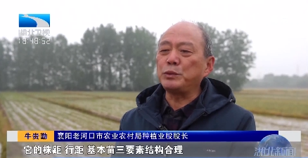 襄阳老河口市农业农村局种植业股股长牛贵勤:“水稻集中育秧,机械插秧进入了高潮,水稻机械移栽,它的株距、行距、基本苗三要素结构合理,为丰收奠定了基础。”