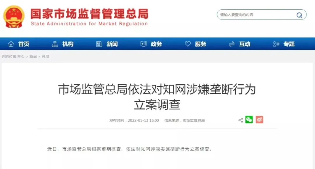 13日,国家市场监管总局发布消息称,市场监管总局根据前期核查,依法对知网涉嫌实施垄断行为立案调查。