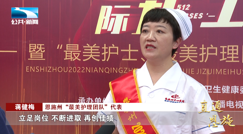 恩施州“最美护理团队”代表 蒋健梅:“把我们的护理团队打造成一支有思想、有温度、有专业的护理团队,在后期的护理管理工作中要更加努力,要立足岗位、不断进取、再创佳绩。”